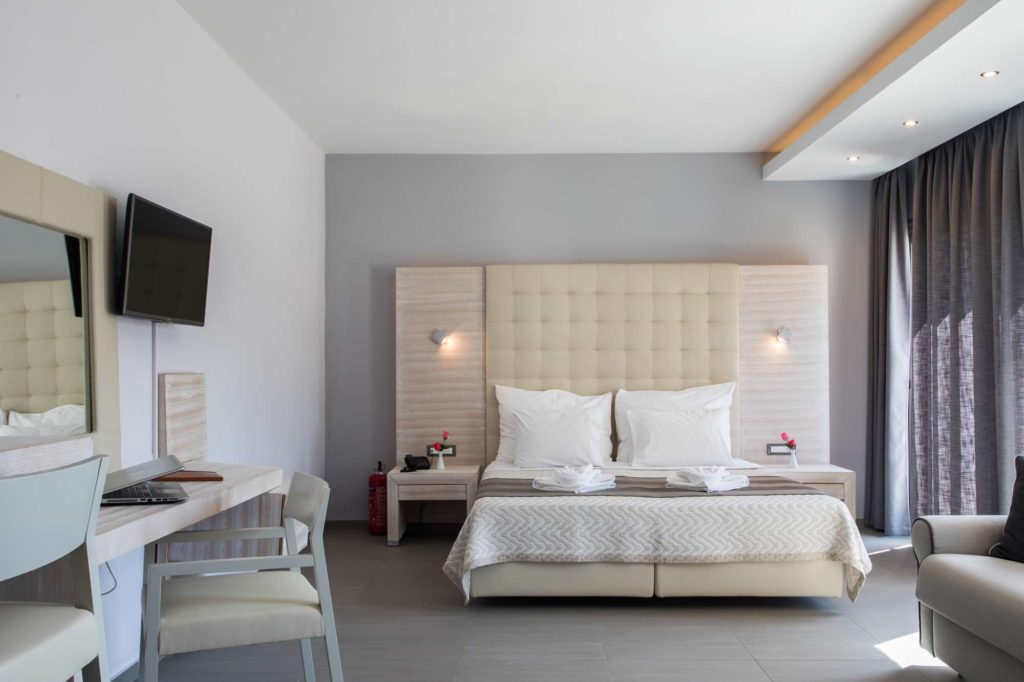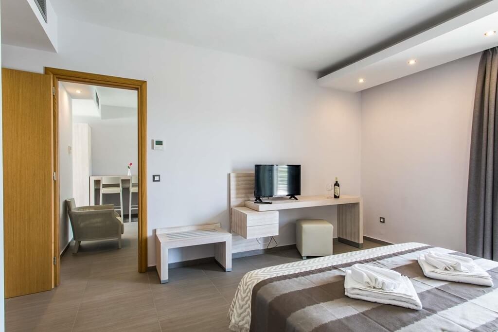 Σχεδιασμένες για να παρέχουν άνεση, περίπου 55 τμ., προσφέρουν μια τέλεια ισορροπία μεταξύ πολυτέλειας και σπιτικής οικειότητας. Ιδανικές για οικογένειες, αποτελούνται από ένα ευρύχωρο υπνοδωμάτιο, ένα ξεχωριστό καθιστικό, ένα μπάνιο με μπανιέρα ή ντους και ιδιωτικό μπαλκόνι ή βεράντα. Μπορούν να φιλοξενήσουν οικογένειες έως πέντε ατόμων. Στο καθιστικό υπάρχει τριθέσιος καναπές που μετατρέπεται σε διπλό κρεβάτι.