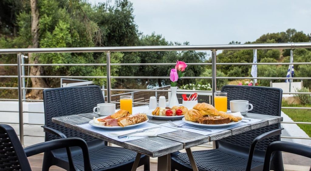Ένα πλούσιο και θρεπτικό πρωινό, από αγνά τοπικά προϊόντα, σερβιρισμένο σε μπουφέ, σας περιμένει κάθε πρωί για να σας βοηθήσει να ξεκινήσετε υγιεινά, γευστικά και δυναμικά την ημέρα σας. Από το ξεκίνημα της μέρας μέχρι και αργά το βράδυ, στο εστιατόριο ή στο μπαρ, θα απολαύσετε μοναδικές γεύσεις αγναντεύοντας την υπέροχη θέα από τα νερά του Ιονίου.