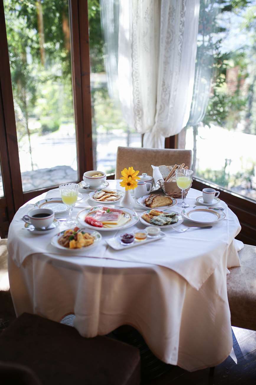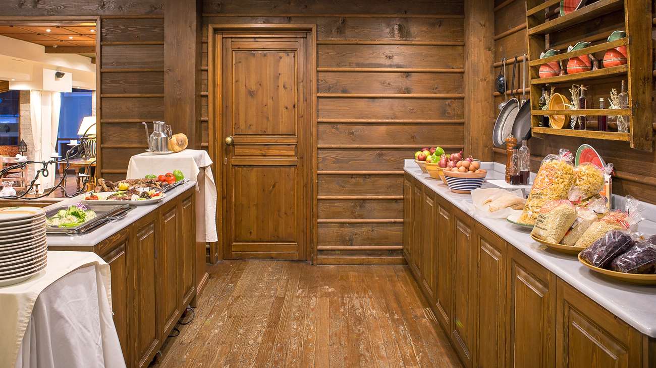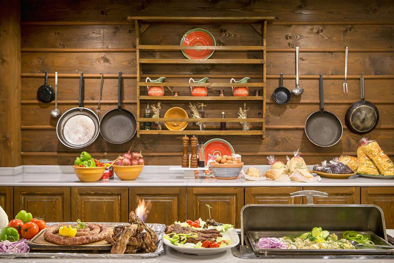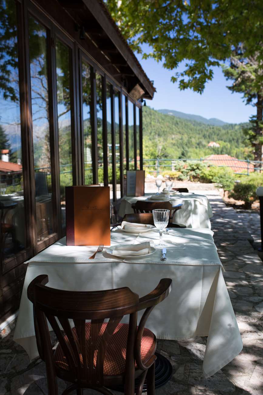 Οι επισκέπτες μπορούν να ξεκινήσουν τη μέρα τους στο Μικρό χωριό, με ένα πλήρες πρωινό σε μπουφέ που σερβίρεται στην τραπεζαρία και περιλαμβάνει παραδοσιακές συνταγές από τοπικά προϊόντα. Το εστιατόριο που βρίσκεται στο ξενοδοχείο, πλήρως εναρμονισμένο στο περιβάλλον του βουνού προσφέρει νόστιμα και μεσογειακά πιάτα και γλυκά. Το εστιατόριο του ξενοδοχείου αποτελεί μια εξαιρετική επιλογή για φαγητό στο Μικρό Χωριό καθώς μπορείτε και να το συνδυάσετε τη διαμονή σας.
