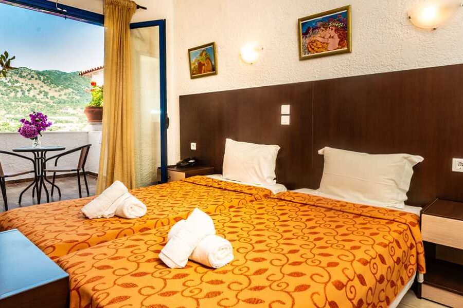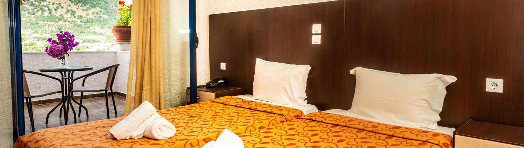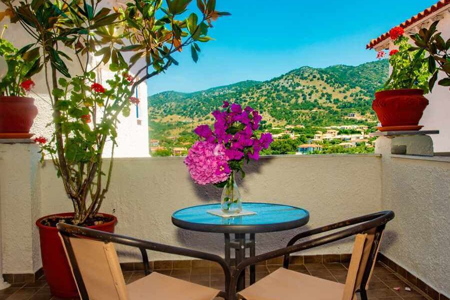 Elena Hotel has comfortable, spacious, bright superior rooms with one double or two single beds. Sunny rooms with terraces or balconies are offered overlooking the sea or Sivota.