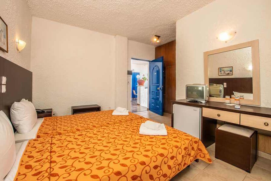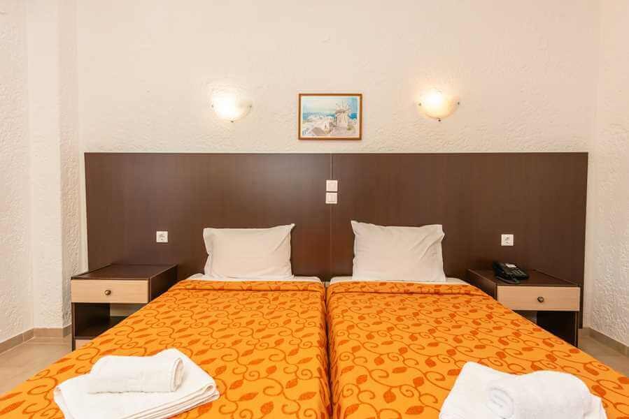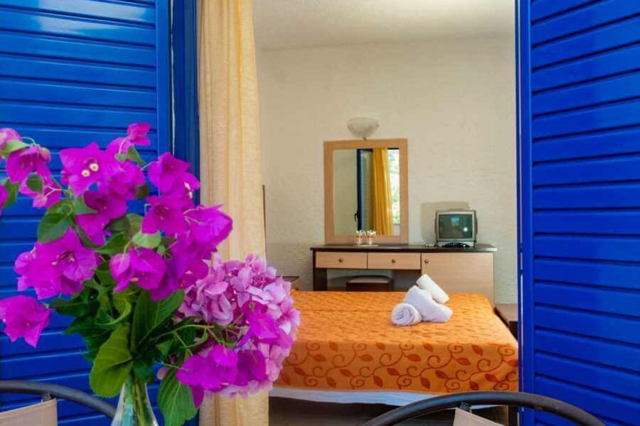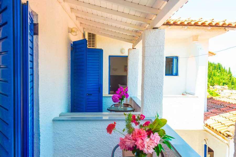 Elena Hotel has comfortable, bright double rooms with one double or two single beds. Sunny rooms with terraces or balconies are offered overlooking the sea or Sivota.