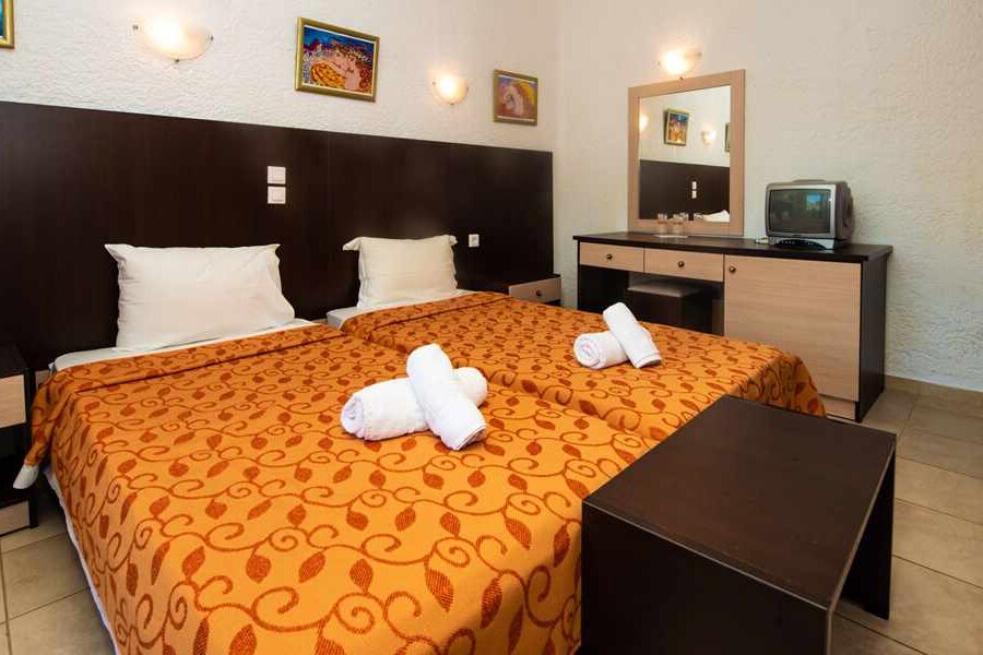There are double rooms for single use with one double or twin beds. Sunny rooms with terraces or balconies are offered overlooking the sea or Sivota.