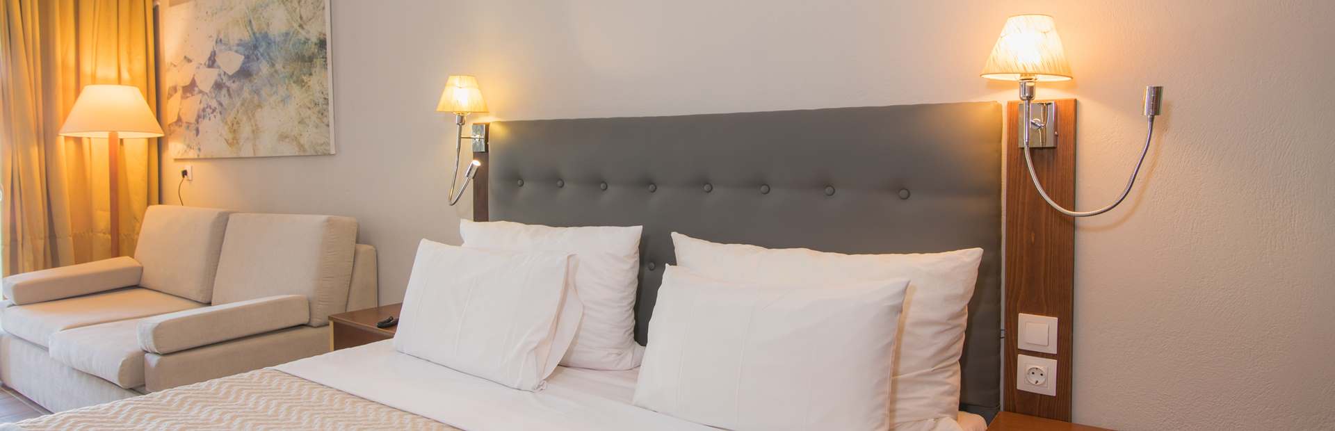 Superior rooms can accommodate two to three people, offering a beautiful and comfortable stay. Those spacious rooms have a balcony with a seaside or a garden view.